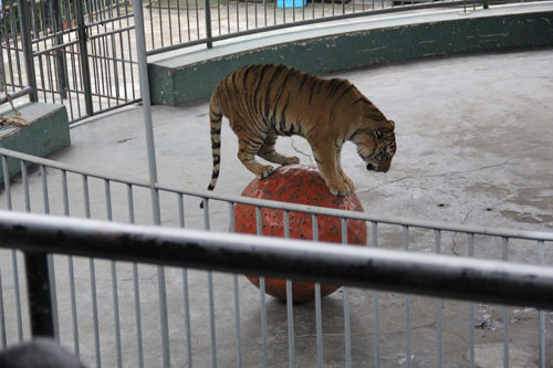 隨后,大家進(jìn)入了動(dòng)物園。在園中,眾人見(jiàn)到了許多只有在電視和國(guó)家地理雜志上才能見(jiàn)到的珍稀動(dòng)物,例如:金錢豹、羊駝、鴛鴦、丹頂鶴、天鵝、棕熊、娃娃魚(yú)……時(shí)間趕巧,進(jìn)入表演區(qū)的時(shí)候正逢動(dòng)物明星們表演。可愛(ài)的小棕熊會(huì)跨欄、會(huì)玩單杠、會(huì)騎自行車;身材健碩的獅子會(huì)站立后腿跟人打招呼和轉(zhuǎn)圈;威武的獅子能踩著圓球前進(jìn),真是讓人不可思議。